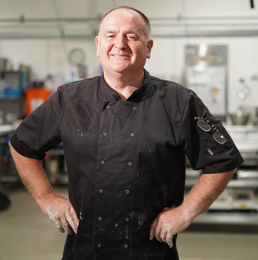 After completing his City & Guilds at Cheltenham Technical College, he was supervising by age 19, mastering celebration cake decoration and sugar craft. He went on to hone his craft across a number of small bakeries, before stepping into management at 28, overseeing 82 staff in a BRC food standard accredited business, supplying major retailers including M&S, Waitrose, and Costa Coffee.